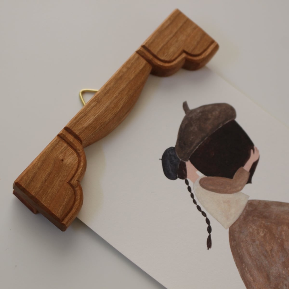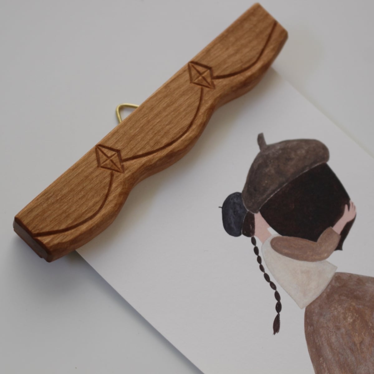 木と木の間に挟めるように磁石が埋め込まれていますのでコピー用紙であれば5,6枚くらいの厚さや写真や布もOK!